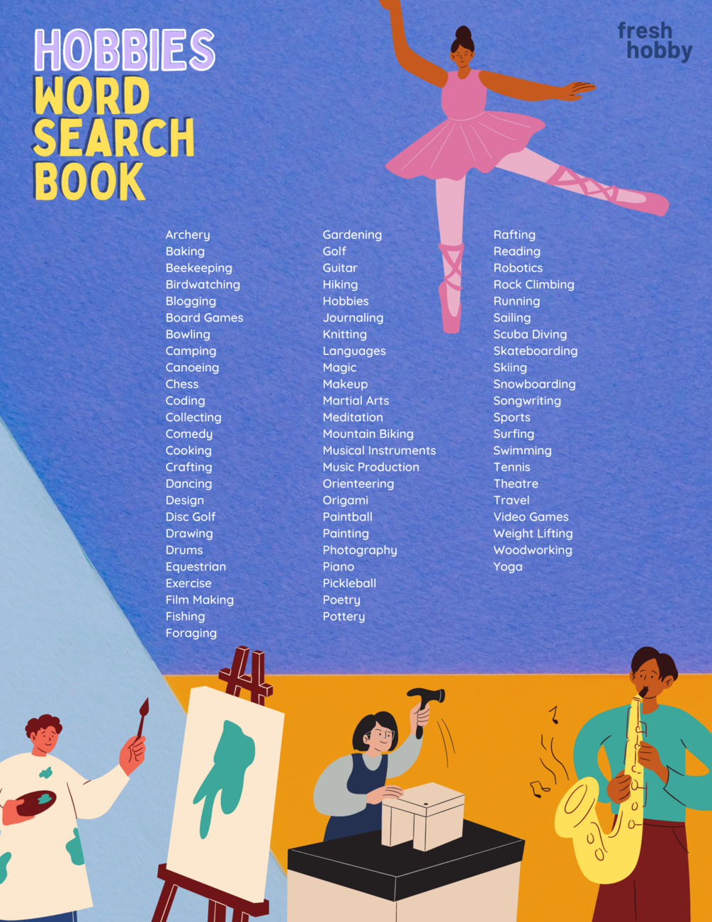 Our Hobbies Word Search Book is perfect for people of all ages looking to discover and learn new hobbies!